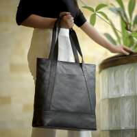 'Barbara' Black Soft Full Grain Leather Tote Bag