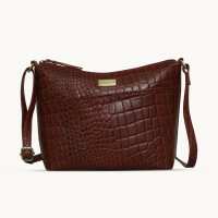 'CAROL' Brown Croc Real Leather Designer Crossbody Shoulder Bag