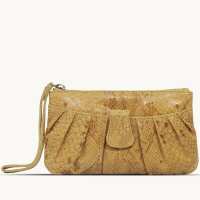 'DARCY' Mustard Pleated Snake Print Real Leather Wristlet Pouch