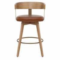 Roman Oak Bar Stool Brown Real Leather
