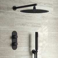 Ballina Premium Matt Black Round Thermostatic Shower Set - 300mm Head & Hand Shower