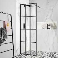 Munich Matt Black Grid Easy Clean 8mm Wet Room Shower Glass Panel 700mm