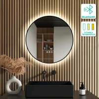 Mollie Black Framed Round Backlit LED Mirror With BLUETOOTH Speaker 600mm