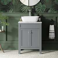 Bermuda Dove Grey Vanity with Marble Top & Curved Counter Top Basin 600mm