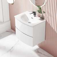 Bali Gloss White Wall Hung Basin Drawer Vanity 600mm