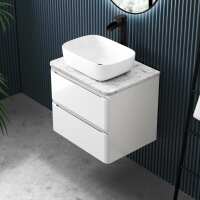 Corsica Gloss White Wall Hung Drawer Vanity with Marble Top & Curved Counter Top Basin 600mm