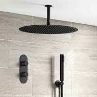 Ballina Premium Ceiling Matt Black Round Thermostatic Shower Set - 400mm Head & Hand Shower