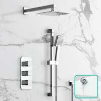 Galway Premium Chrome Square Thermostatic Bath Filler Shower Set - 200mm Head & Slider Shower