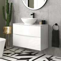 Austin Gloss White Wall Hung Drawer Vanity with Marble Top & Oval Counter Top Basin 800mm