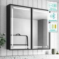 Mia Black Framed Illuminated LED Mirror Cabinet With BLUETOOTH Speaker&USB Port 710x800mm