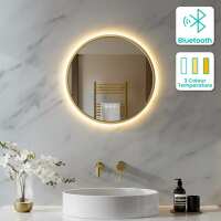 Delilah Brushed Brass Round Backlit LED Mirror With BLUETOOTH Speaker 500mm