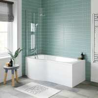 P Shaped 1600 Shower Bath with Front Panel & 4mm Screen - Left Handed