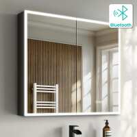Esme Matt Black Illuminated LED Mirror Cabinet With BLUETOOTH Speaker 700x800mm