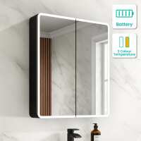 Aurora Battery Operated Matt Black Illuminated LED Mirror Cabinet 700x600mm