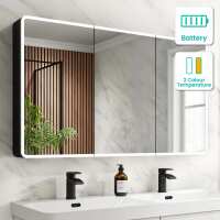Aurora Battery Operated Matt Black Illuminated LED Mirror Cabinet 700x1200mm