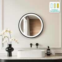 Delilah Black Framed Round Illuminated LED Mirror 500mm