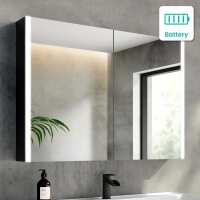 Esme Battery Operated Matt Black Illuminated LED Mirror Cabinet 700x600mm