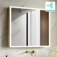 Margot Brushed Brass Illuminated LED Mirror Cabinet With BLUETOOTH Speaker & USB Port 700x800mm