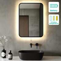 Mila Battery Operated Black Framed Backlit Illuminated LED Mirror 700x500mm
