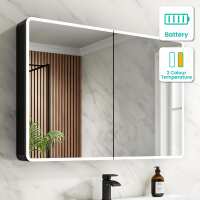Aurora Battery Operated Matt Black Illuminated LED Mirror Cabinet 700x1000mm