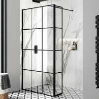 Munich Matt Black Grid 8mm Wet Room Shower Glass 900mm & 250mm Pivotal Return Panel