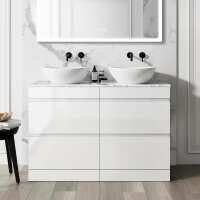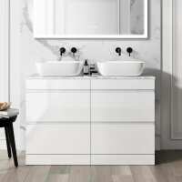 Trent Gloss White Double Vanity Drawer with Marble Top & Curved Counter Top Basin 1200mm