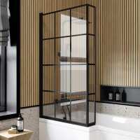 Zurich Easy Clean Matt Black Grid L Shaped Bath Screen - 800mm