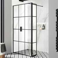 Munich Matt Black Grid 8mm Wet Room Shower Glass 900mm & 250mm Pivotal Return Panel