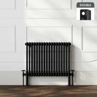 Athens Matt Black Double Column Horizontal Traditional Radiator 600x785mm
