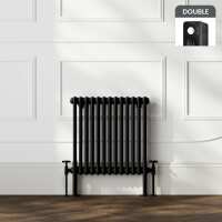 Athens Matt Black Double Column Horizontal Traditional Radiator 600x605mm