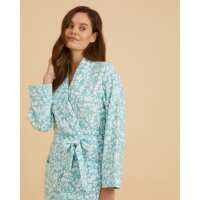 Women's Brushed Cotton Dressing Gown - Aqua Floral M