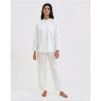 Women's Satin Stripe Cotton Pyjamas - White P