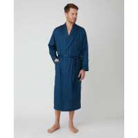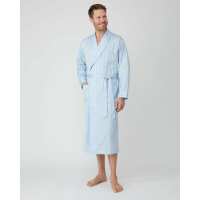 Men's Satin Stripe Cotton Dressing Gown - Sky S
