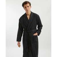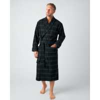 Men's Silk-Lined Wool Robe - Navy Green Stripe S