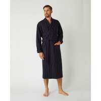 Men's Silk-Lined Wool Robe - Navy Red Stripe M