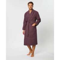 Men's Silk-Lined Wool Robe - Burgundy Grey Check L