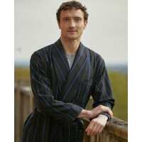 Men's Silk-Lined Wool Robe - Navy Forest Stripe M