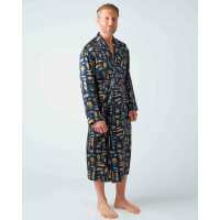 Women's Brushed Cotton Dressing Gown - Midnight Bloom M
