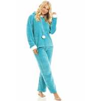 Camille Women's Hooded Pyjama Set Light Blue Long Sleeve Soft Nightwear - 18/20 Colour: Light Blue, size: 18/20
