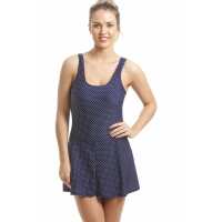 Camille Stylish Figure Flattering Navy Polka Dot Skirted Swimsuit size