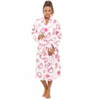 Camille Pink Heart Print Supersoft Fleece White Bathrobe size: 10/12
