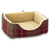 Haven Square Fleece Lined Luxury Dog Bed 5 Sizes in Signature Tartan: Brown-Burgundy-Rust Medium - W:60 x D:54 x H:20cm