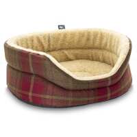 Snug Fleece Lined High Sided Oval Luxury Dog Bed 5 Sizes in Signature Tartan: Brown-Burgundy-Rust Extra Large - W:78 x D:66 x H:26cm
