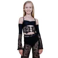 Exquisite Lace Crop and Sleeve Set Black / 10 (Child)