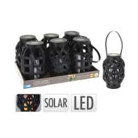Solar Lantern Black Rattan 25cm 2 Assorted