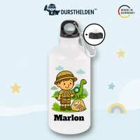 DURSTHELDEN™ Personalisierte Kindertrinkflasche mit Namen – Dinosaurier Motiv | Auslaufsicher & BPA-frei