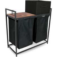 Wäschekorb 2 Fächer 92 Liter ausziehbar mit Aufbewahrungsbox Vintage