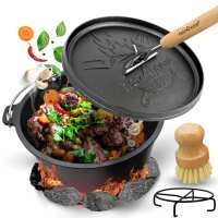 Dutch Oven ohne Füße I eingebrannter Feuertopf aus Gusseisen I inkl. Deckelheber, Topfständer und Reinigungsbürste 9 Liter