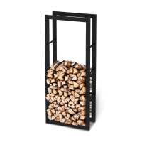 Kaminholzregal aus Metall Schwarz inkl. Ofenhandschuh 60x25x150cm