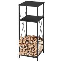 Kaminholzregal 100 x 25 x 25cm aus Metall Schwarz inkl. Ofenhandschuh
